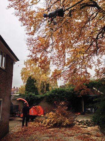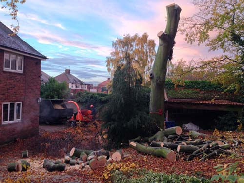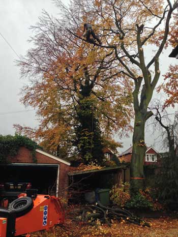 20th November 2013Following the initial survey on a beech tree in Worksop, we carried out removal due to the prescence of Ganoderma, a saprophytic fungi. The fungi had been present for a minimum of 13 years, and whilst measures to prolong the life of the tree were discussed, the client felt (with the uncertainty of the extent of decay present and the targets that existed - namely their house, garage, and within striking distance of a road) that removal was the best option.