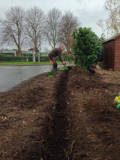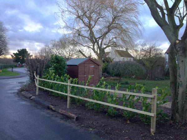 The existing mixed hedging was relatively sparse and in a poor state, the clients' requirements were to have a replacement hedge that was fast growing, a good screen and hardy. Laurel (Prunus laurocerasus) hedging suited the requirements of the client. The hedging plants were sourced from Green Mile Trees, who provided exceptionally good quality plants.